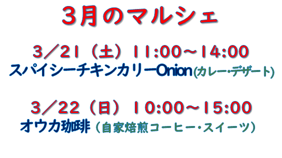 マルシェでの駐車券サービスはありませんので、ご注意ください。